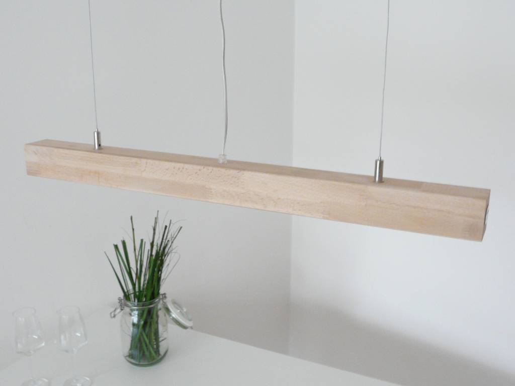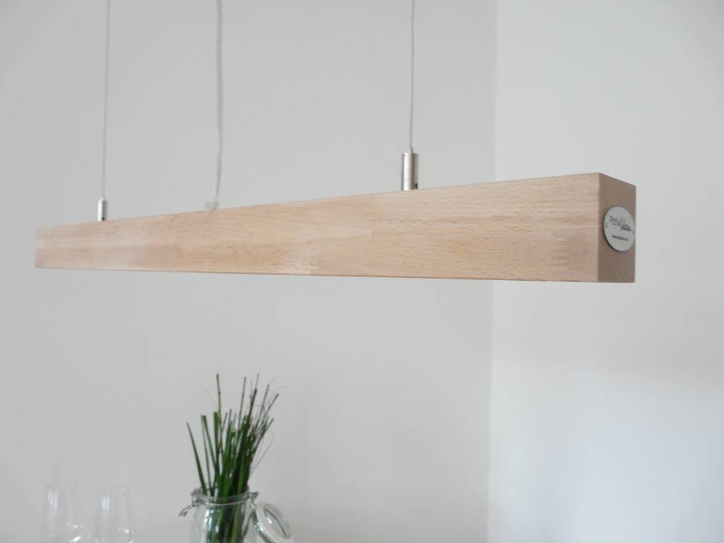 Schlicht, elegant, modern und zeitlos,ist diese, aus einem massiven Vierkant-Buchenholz gefertigte Pendelleuchte.