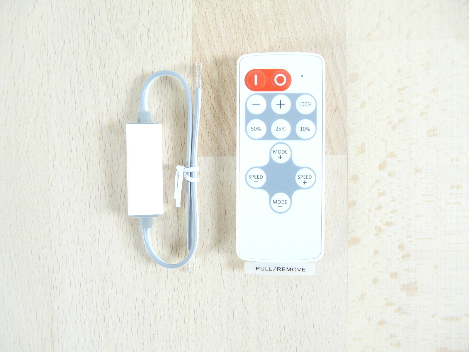 Mit dieser Fernbedienung kann die Leuchte geschaltet und stufenlos gedimmt werden. Der Aufpreis beträgt 28,- €.