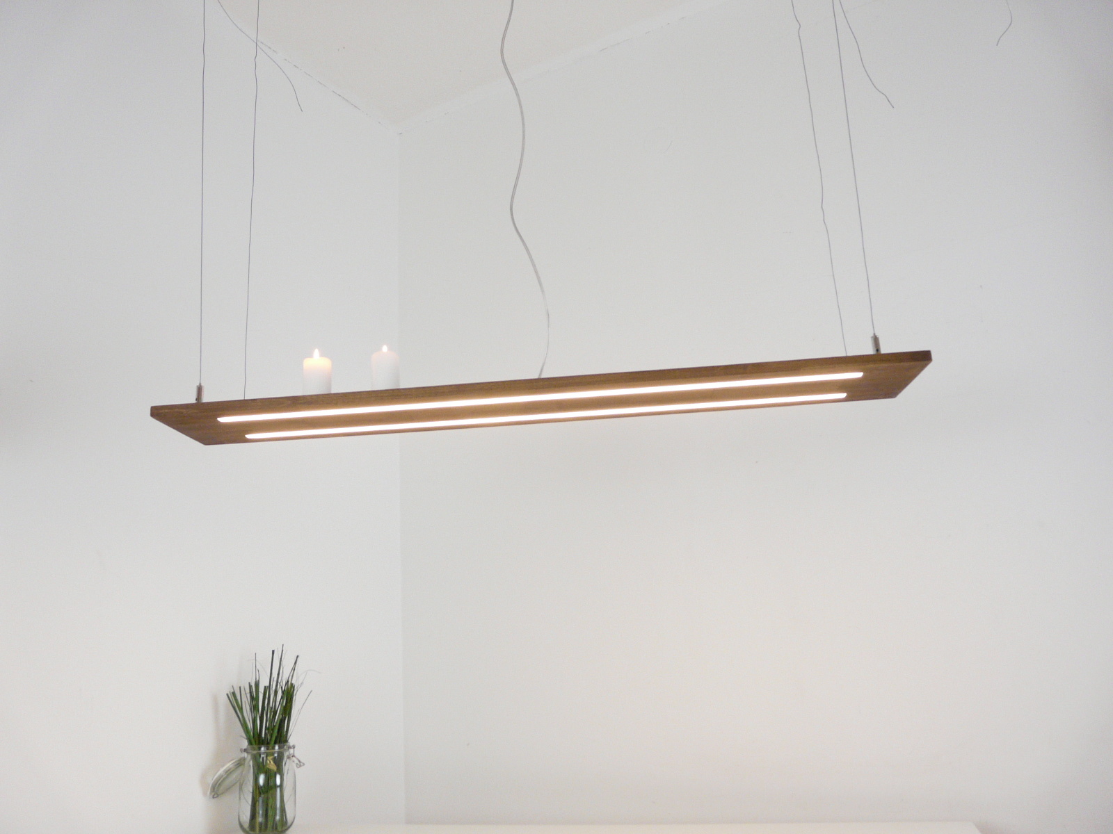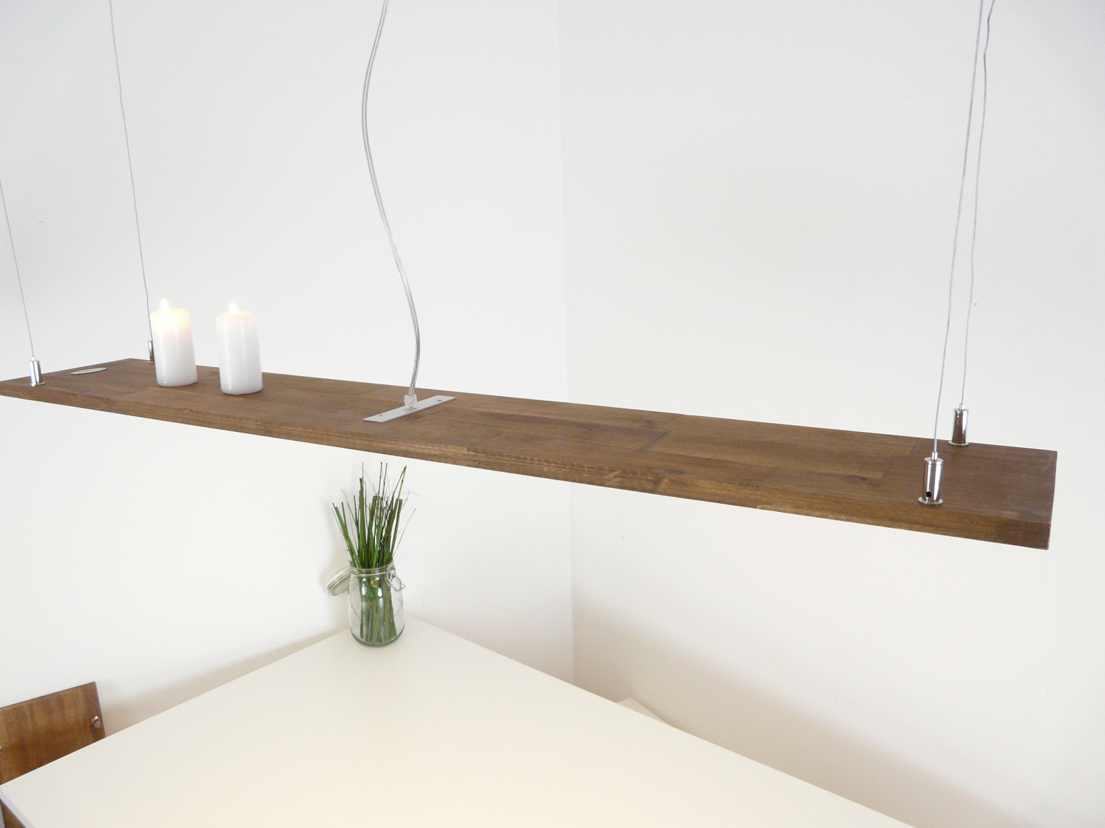 die Tragfähigkeit der vier Seilabhängungen beträgt 6 kg und ermöglicht Ihnen, dekorative Elemente wie z.B. Kerzen und Gläser zu platzieren!