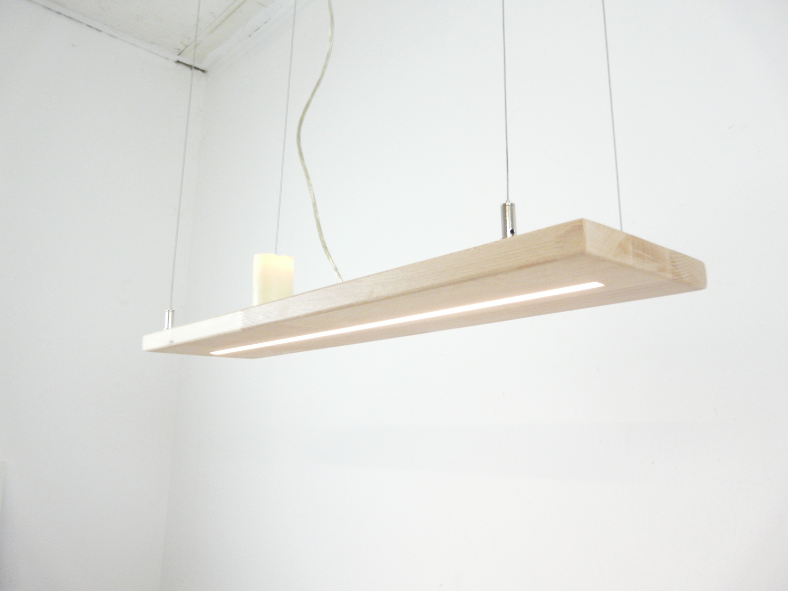 Schlicht, elegant, modern und zeitlos ist diese hochwertige handwerklich hergestellte LED Hängeleuchte mit einer Brettstärke von 28 mm.