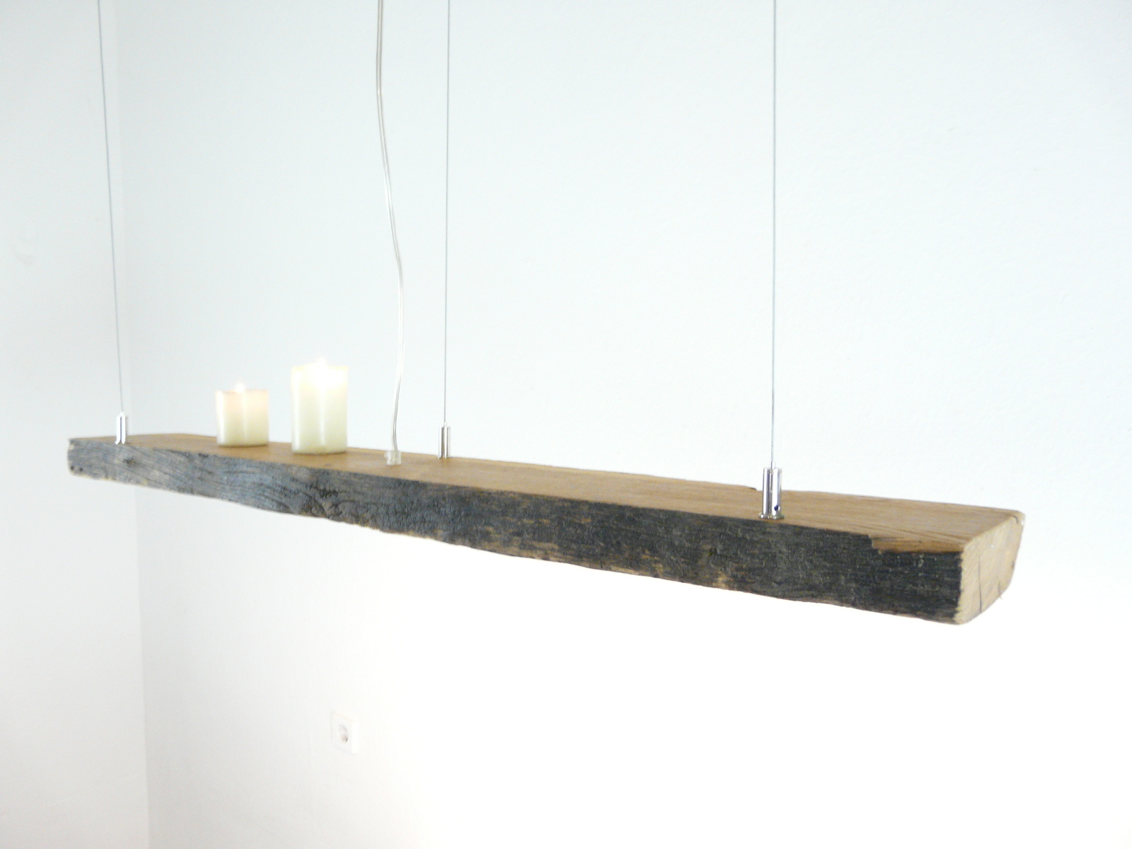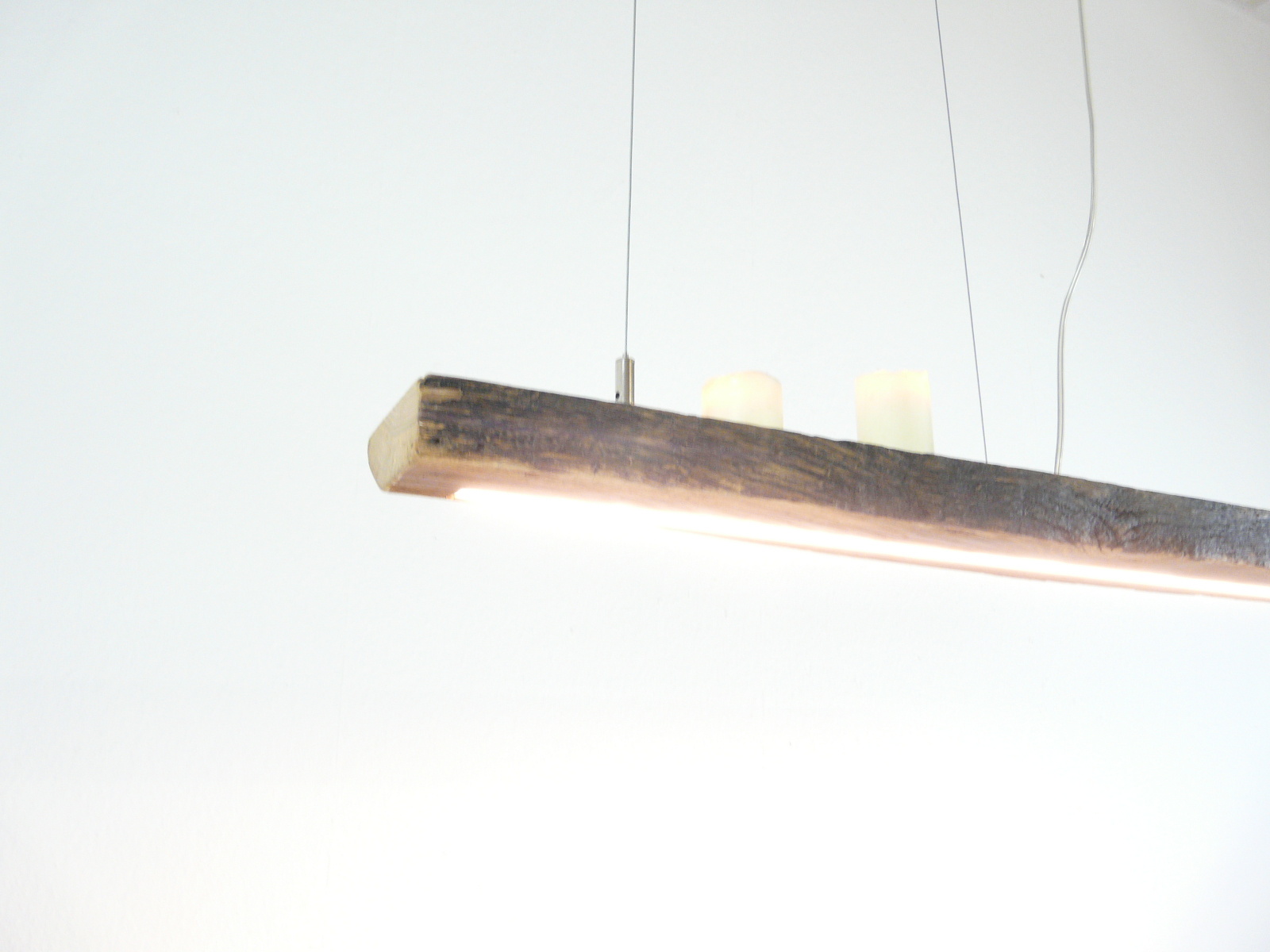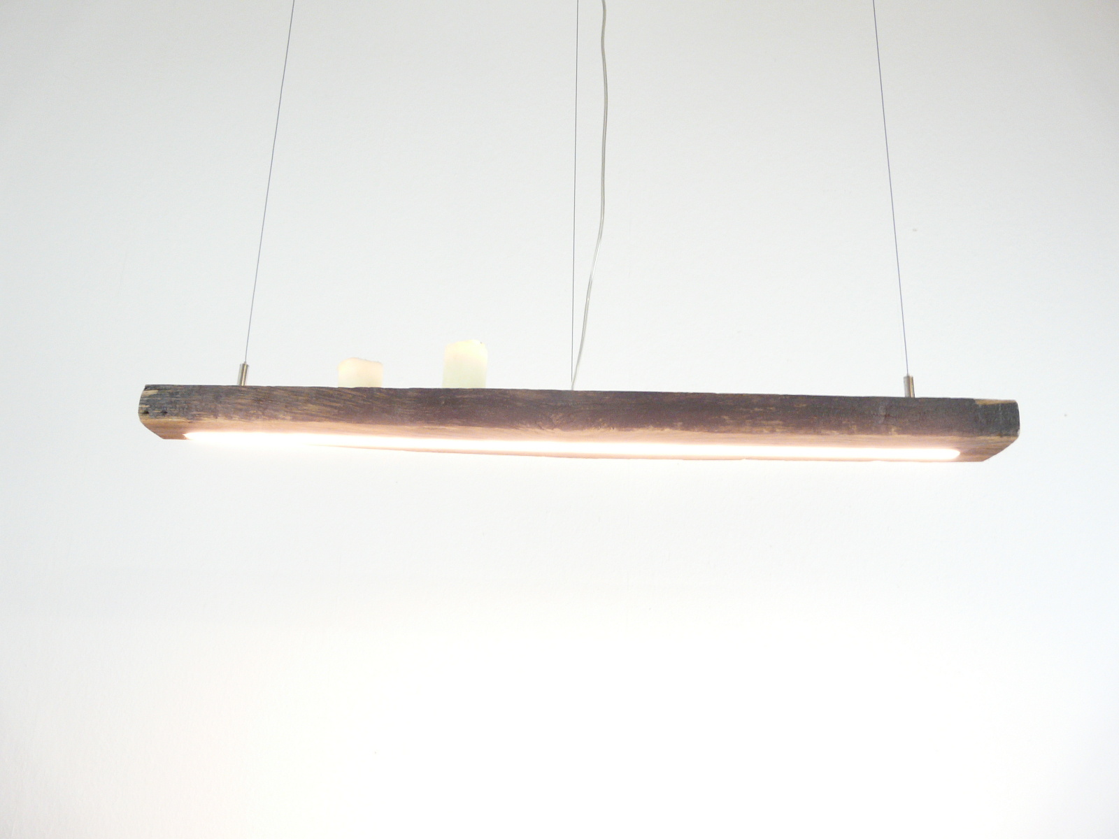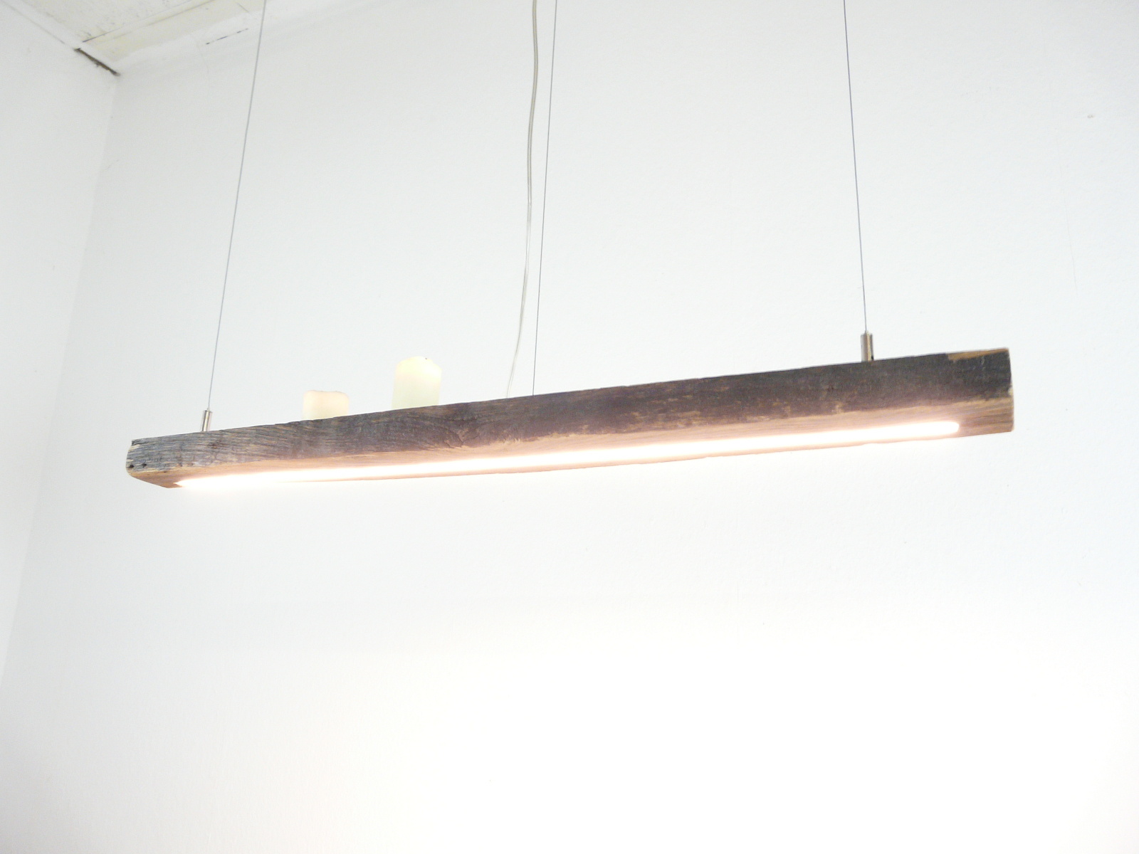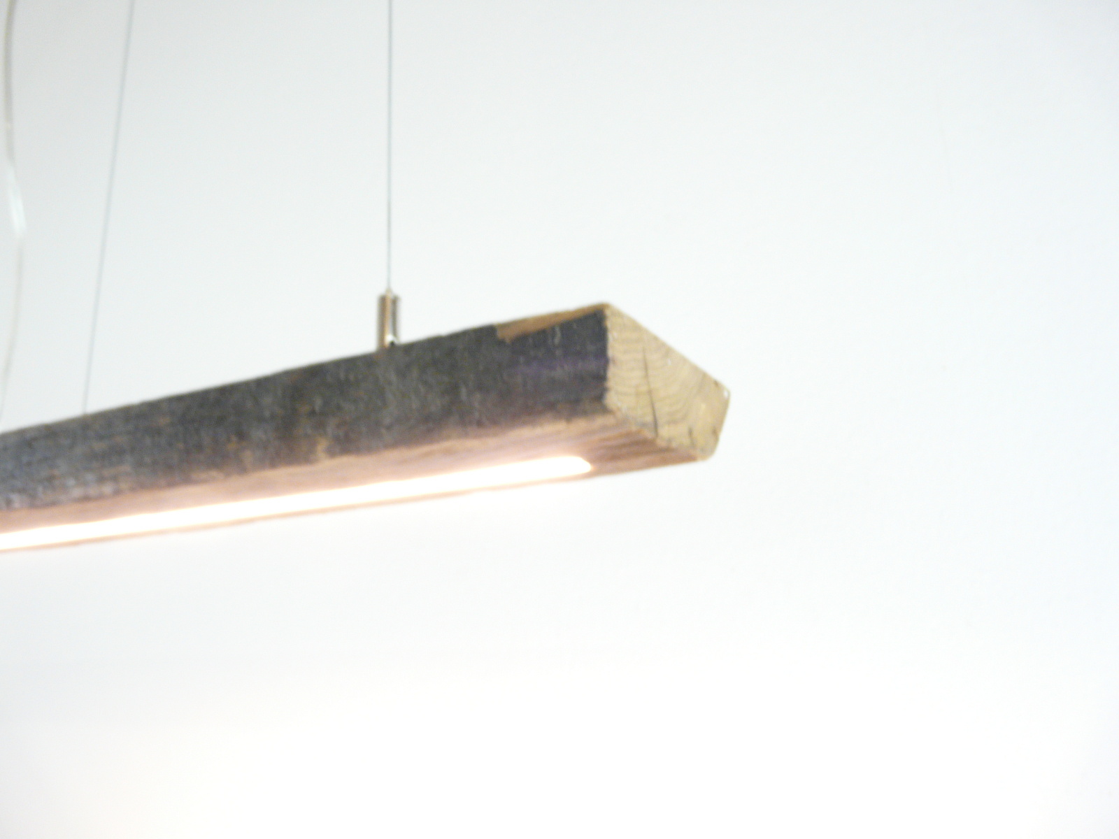 Ein mehrere hundert Jahre alter Holzbalken wurde zu einer außergewöhnlichen Lampe gefertigt.