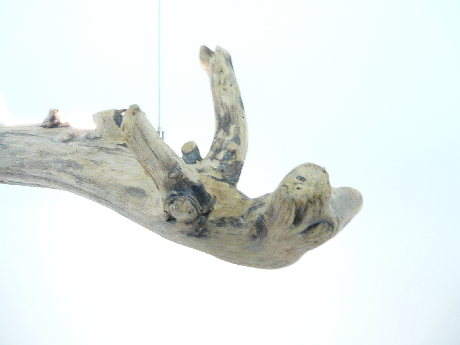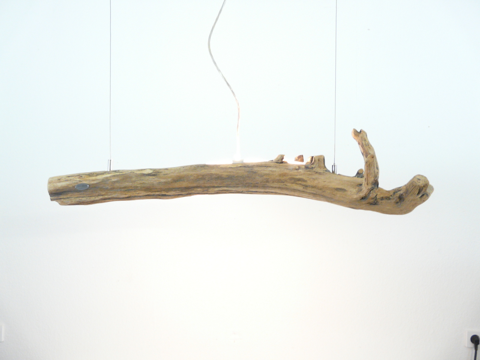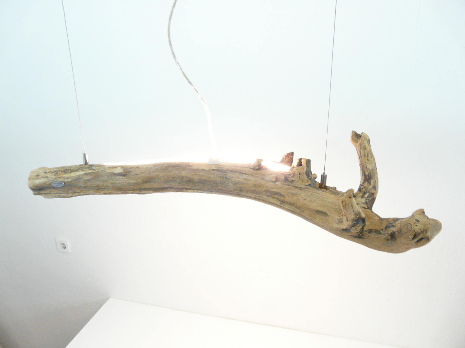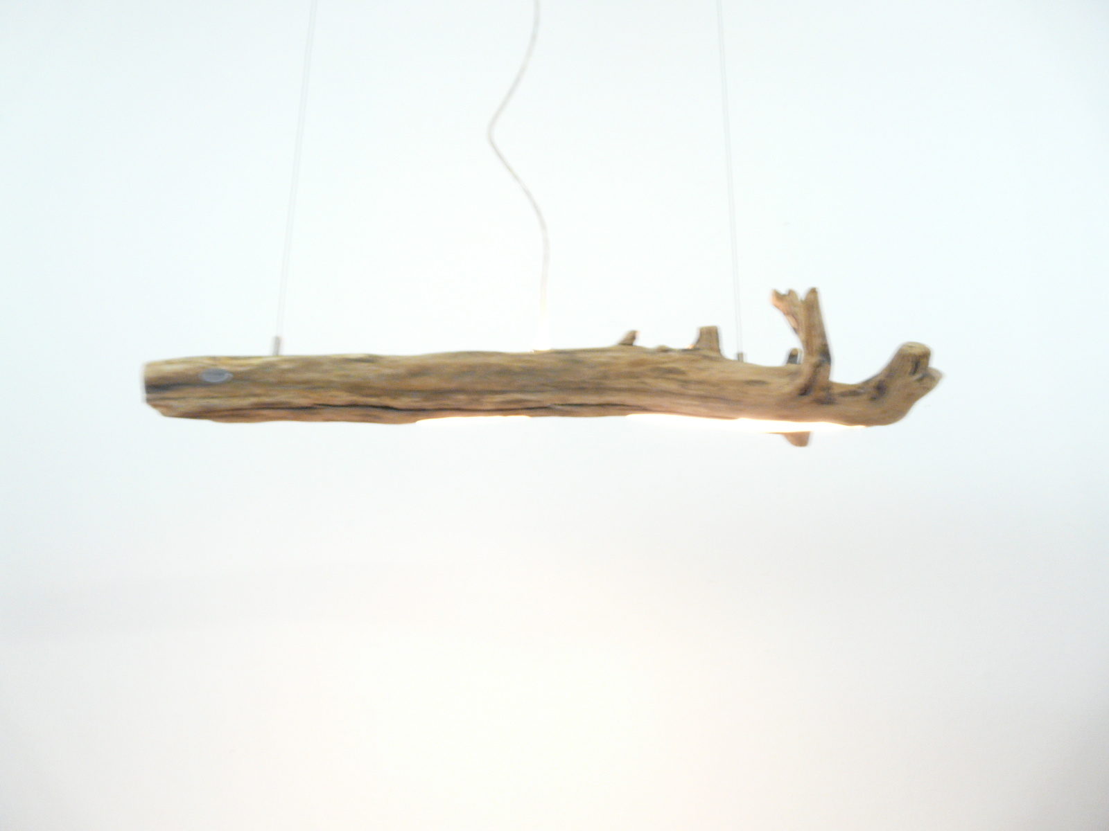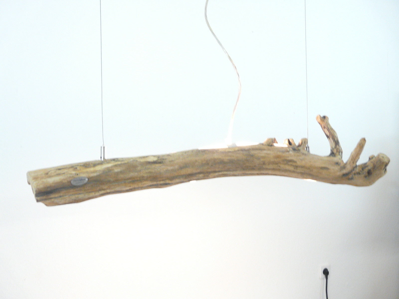Ein kleines Kunstwerk ist diese individuelle Treibholzleuchte. Dem Treibholz angepasst,wurden die Hochleistungs LED Bänder mit einer opalen Abdeckung zur optimalen Lichtverteilung abgedeckt. Durch die 2 hauchdünnen 150 cm langen Drahtseilabhängungen scheint die Hängeleuchte förmlich im Raum zu schweben. Die Holzoberfläche wurde naturbelassen. Die Leuchte wurde mit LED Bändern bestückt, diese LEDs sind besonders langlebig und geben ein hervorragendes blendfreies Licht nach unten ab. Das LED Band kann durch uns, einen handwerklich versierten Laien oder auch durch einen Fachbetrieb ausgetauscht werden. Unsere Treibholz oder Schwemmholzlampen sind einzigartig und werden aufwändig bearbeitet. Durch die Einlage von Aluminiumstreifen werden die LEDs hervorragend gekühlt und die Lebensdauer von 25.000 Stunden wird dadurch verlängert. Sie sind ein absoluter "Eyecatcher" also ein Hingucker und ein Gewinn für jeden Raum